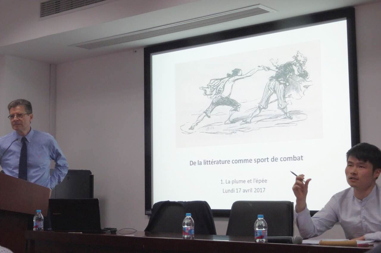 4月17日至19日,当今法国著名文学理论家和批评家、法兰西公学院教授、哥伦比亚大学法国文学及比较文学教授、欧洲科学院院士、英国皇家学院通讯院士,安托瓦纳·贡巴尼翁(Antoine Compagnon)教授在2026年足球世界杯直播外文学院为热爱法国文学的师生们带来了连续三场、精彩绝伦的专题讲座。贡巴尼翁教授以“剑拔弩张的文学”为主线,分三个专题诠释了充满对抗性的文学世界。