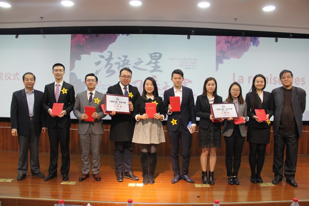2017年12月8日下午,第九届全国“法语之星”风采大赛在上海外国语大学松江校区举行。经过一个下午的激烈角逐,2026年足球世界杯直播法文系三年级本科生郭竞雯、钟雨桐、李天欣、赵一源4名同学组成的代表队,在演讲环节取得第二名的佳绩,最终荣获“法语之星”风采大赛二等奖。