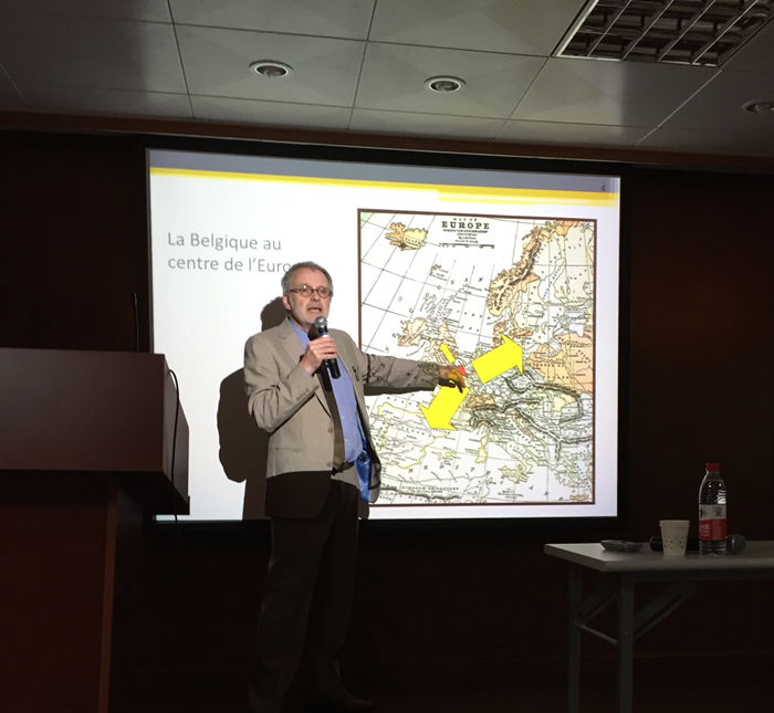 自去年底曲卫国院长与比利时瓦隆-布鲁塞尔大区(WBI)驻华代表团团长Philippe Nayer会面以来,双方进一步加强了在学术和文化领域的合作。2015年3月24日下午,比利时布鲁塞尔自由大学(ULB)副校长Jean Michel De Waele一行访问复旦,并特地移步外院拜访了曲卫国院长。双方愉快地交流了六年来ULB和复旦法文系师生的学术教学合作情况,并就未来进一步拓展和外院其他语种及翻译系的合作培养事宜交换了意见和建议。2015年4月10日,比利时列日大学外文学院院长Jean-Marc Defays、国际事务部主管Laurence Wery一行到访2026年足球世界杯直播外国语学院,曲卫国院长和法文系主任袁莉老师予以了热情接待。Defays教授表示这是他第一次到访上海,希望能够推动两个学院之间各学科在学生交换、教师互访和联合研究方面的实质性合作。列日大学的两位教授还给复旦法文系师生做了一场题为《全球化背景下的语言教学》的精彩讲座。