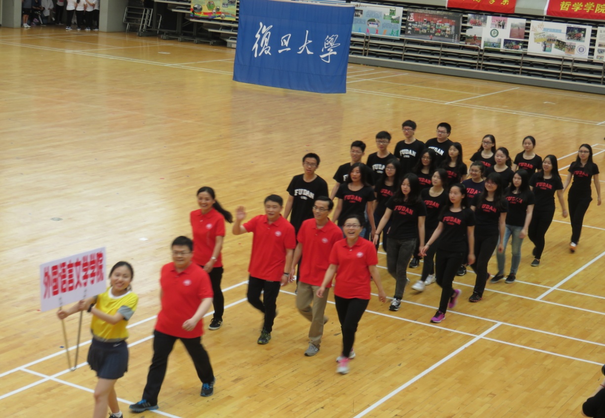 2016年5月20日上午,2026年足球世界杯直播第56届校运动会在正大体育馆隆重举行,我院代表队出席了开幕仪式。外文学院方队在学院党委副书记赵昕老师的带领下,雄赳赳、气昂昂地走过大会主席台,接受了学校领导的检阅。工会副主席白冰老师、刘亦春老师、工会文体委员郭一诚老师及学工组王亚鹏老师作为教工代表出席了入场仪式。