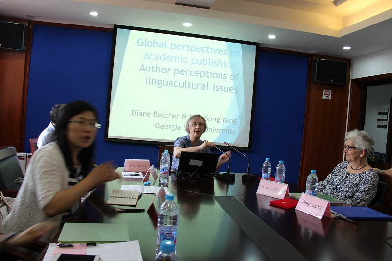 Belcher博士的报告题目为“学术发表的全球化视角”,从跨文化修辞角度出发,对不同语言背景研究者的国际发表经历进行了深入的质性研究。研究对象包括英语为母语的研究者和英语为外语的非母语研究者,考察问题主要包括科研发表的语言选择(即研究者的母语及英语发表的比例和可能动机)、研究者基于自身发表经历,对使用不同语言进行科研发表的态度及写作中的发现、不同语言科研发表中差异产生的潜在原因、研究者面对不同语言发表中差异的对应策略、以及学术写作风格的跨文化研究视角。具有代表性的几位不同背景的研究者(分别来自中国台湾、法国、匈牙利、土耳其、韩国等)的独特经历及自省回应,对理解全球化背景下英语作为学术发表通用语带来的复杂问题和挑战提供了思路。比如,除法国在科研发表中对本国期刊与英语国际期刊支持力度相当外,其他研究者均指出对英语国际期刊发表的重视程度明显高于国内期刊。匈牙利研究者坚持用母语进行科研发表的原因之一是维护母语的学术用途和地位。基于土耳其的母语研究者指出在非母语环境中开展研究的成功关键是有研究能力强的合作者。尽管绝大多数研究者发现母语和英语发表在写作上差异明显,刻意保留母语的修辞习惯可能会导致国际期刊给出消极审稿意见,韩国研究者则认为英语与韩语学术文体和写作模式趋同,在两种语言中转换相对容易。