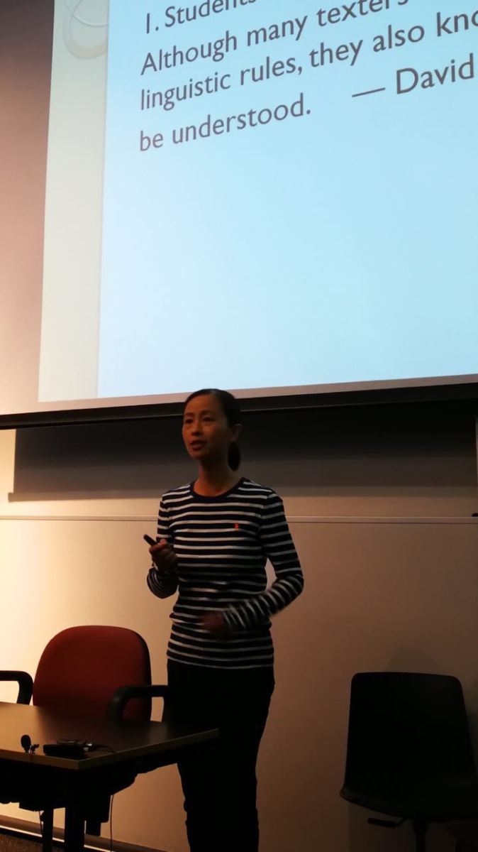 季佩英教授做了题为“English curriculum in Transition: Moving Beyond General English to English for Specific Purposes in China”的主旨报告。她既从宏观上介绍了专门用途英语课程在中国的发展历程、面临的挑战,以及即将由教育部颁布的《大学英语教学指南》,也展示了2026年足球世界杯直播学术英语课程的体系及其辐射效应。