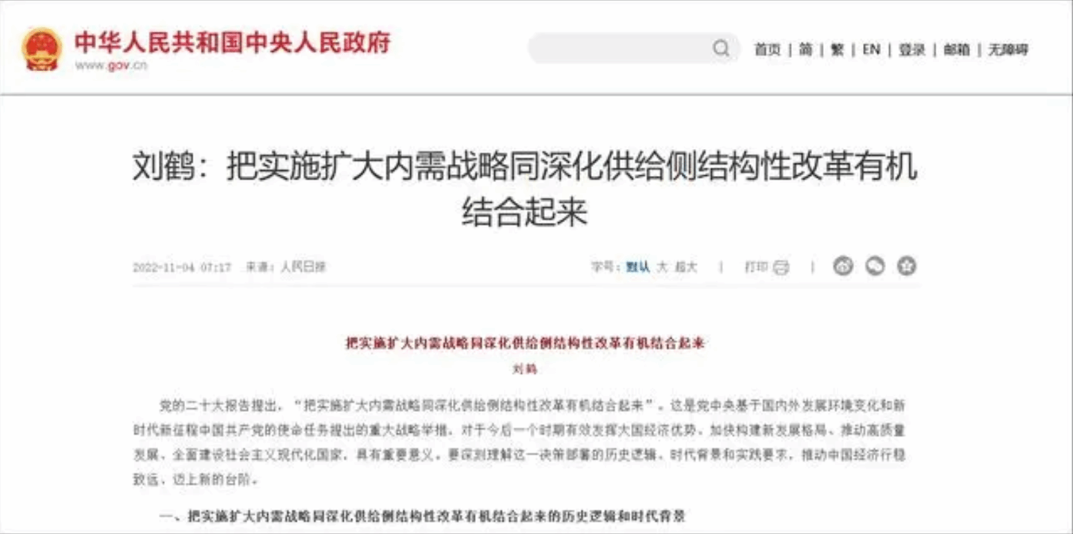 中国前副总理刘鹤发表文章