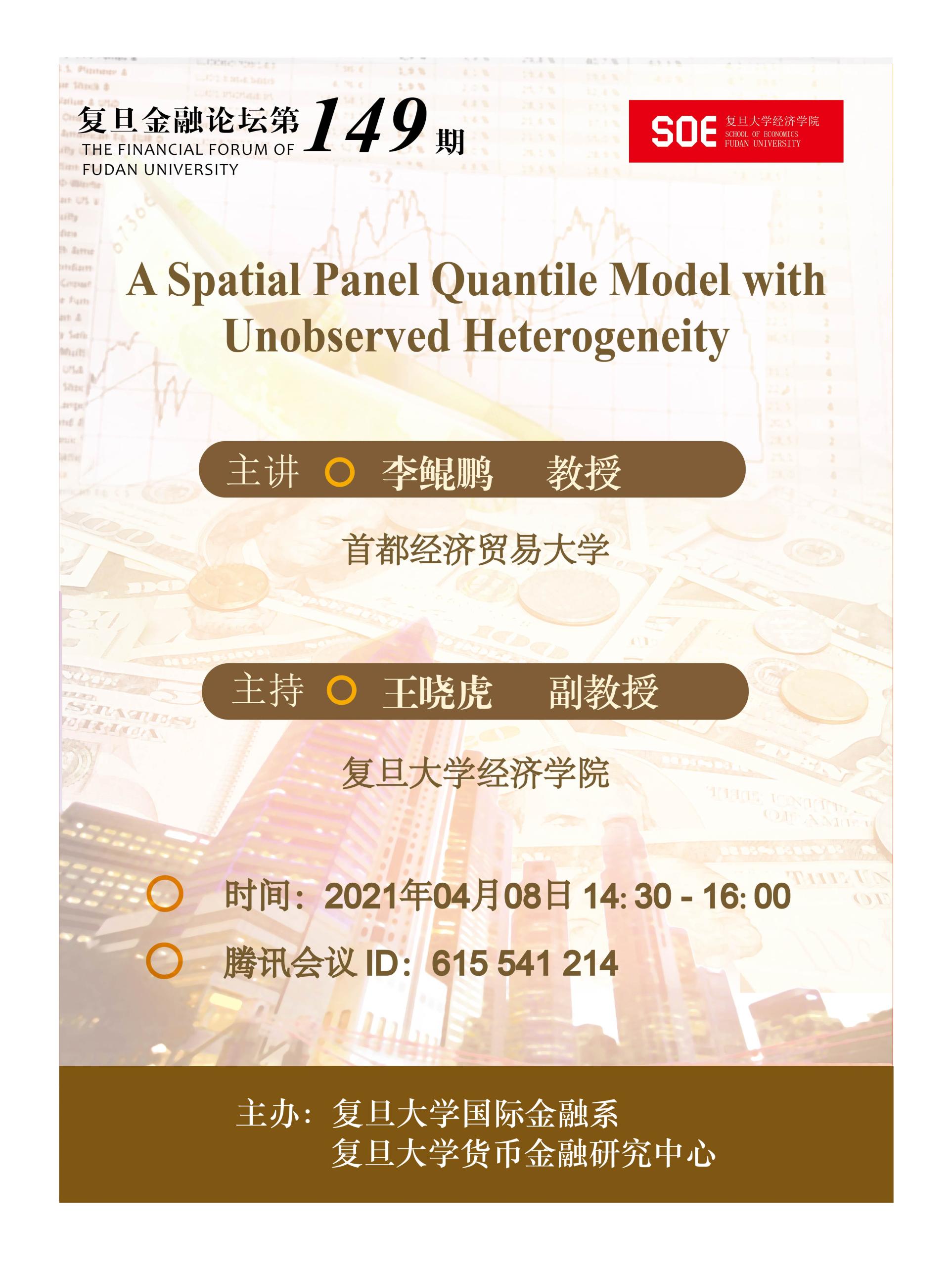 复旦金融论坛第149期:A Spatial Panel Quantile Model with Unobserved Heterogeneity