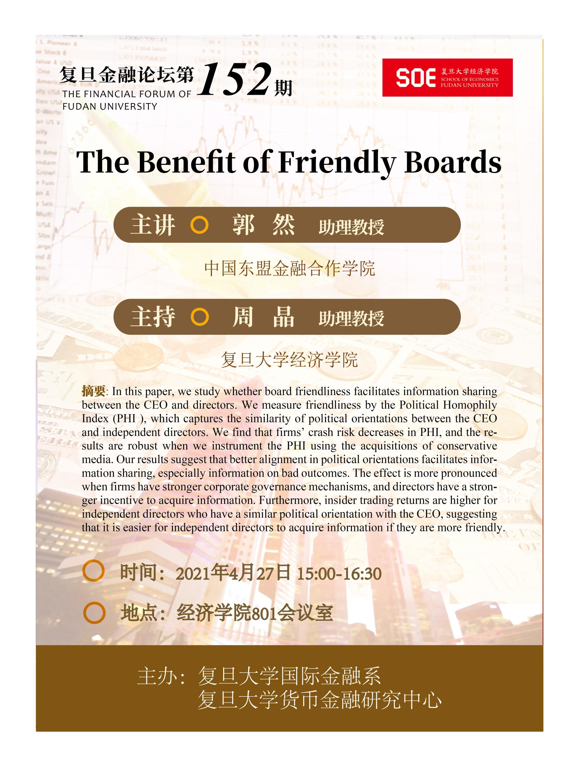 复旦金融论坛第152期:The Benefit of Friendly Boards