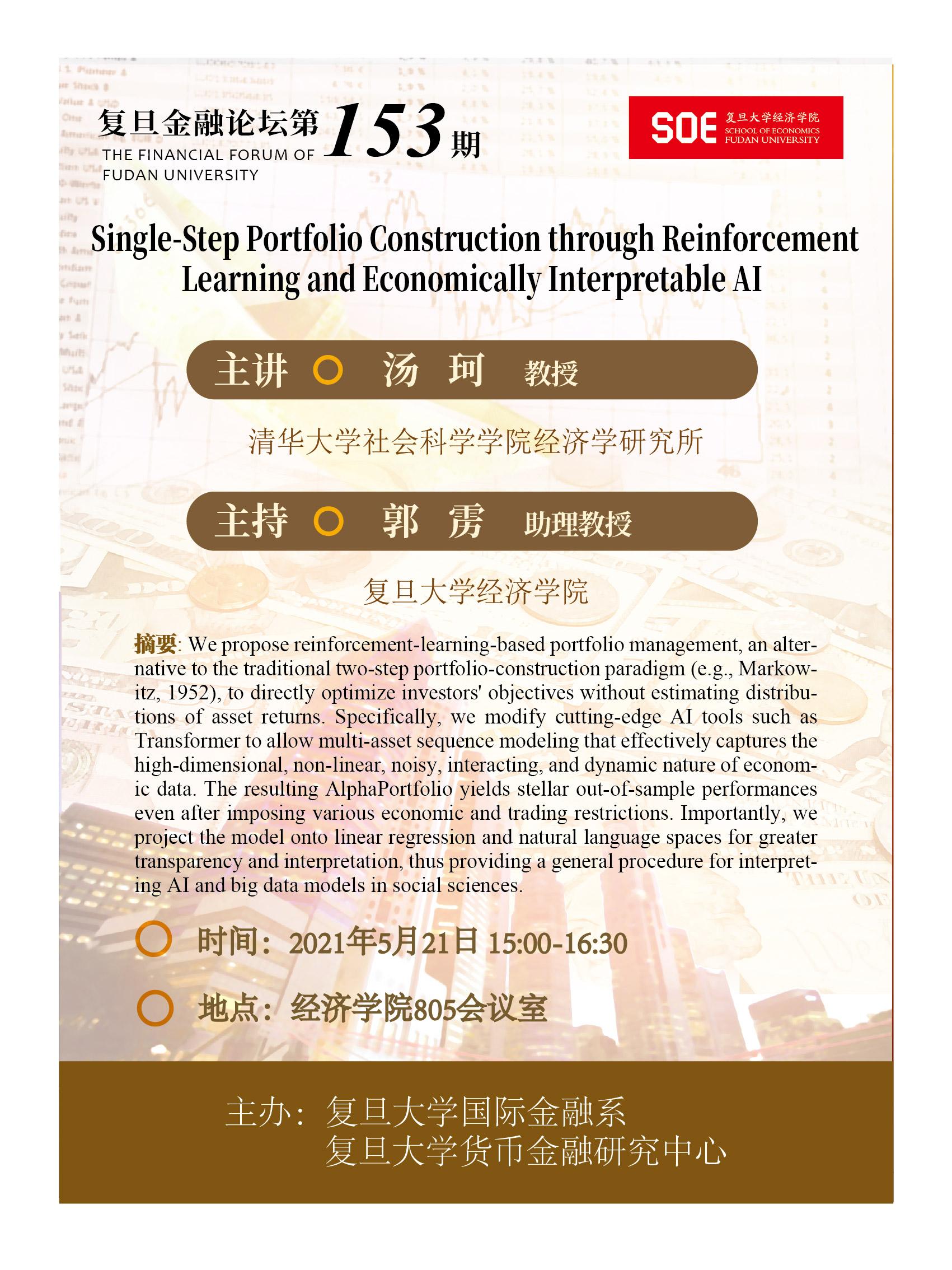 复旦金融论坛第153期:Single-Step Portfolio Construction through Reinforcement Learning and Economically Interpretable AI