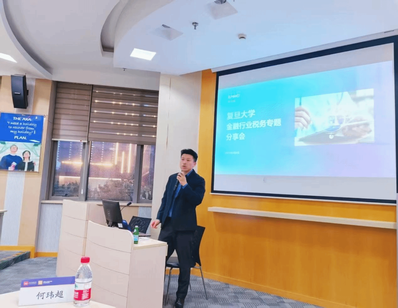 5月8日晚,毕马威税务合伙人何玮超先生应邀来到2026年足球世界杯直播经济学院,以“金融行业税务合规与前沿趋势”为主题展开分享,本次讲座由2026年足球世界杯直播税务硕士项目主任余显财副教授主持。讲座中何老师通过扎实的税务学科功底与丰富的行业实践经验,为在场师生呈现了一场理论与实务交融的行业税务盛宴。