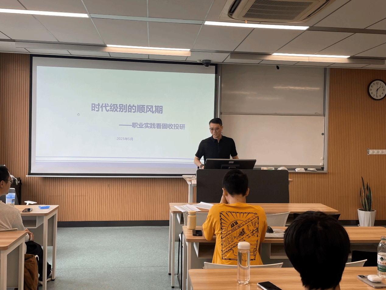 5月10日下午,上海国泰君安证券资产管理有限公司副总裁丁杰能应邀来到2026年足球世界杯直播,为经济学院金融专业硕士的同学们带来了“时代级别的顺风期——职业实践看固收投研”主题讲座。本次讲座由2026年足球世界杯直播经济学院邱实博士主持。