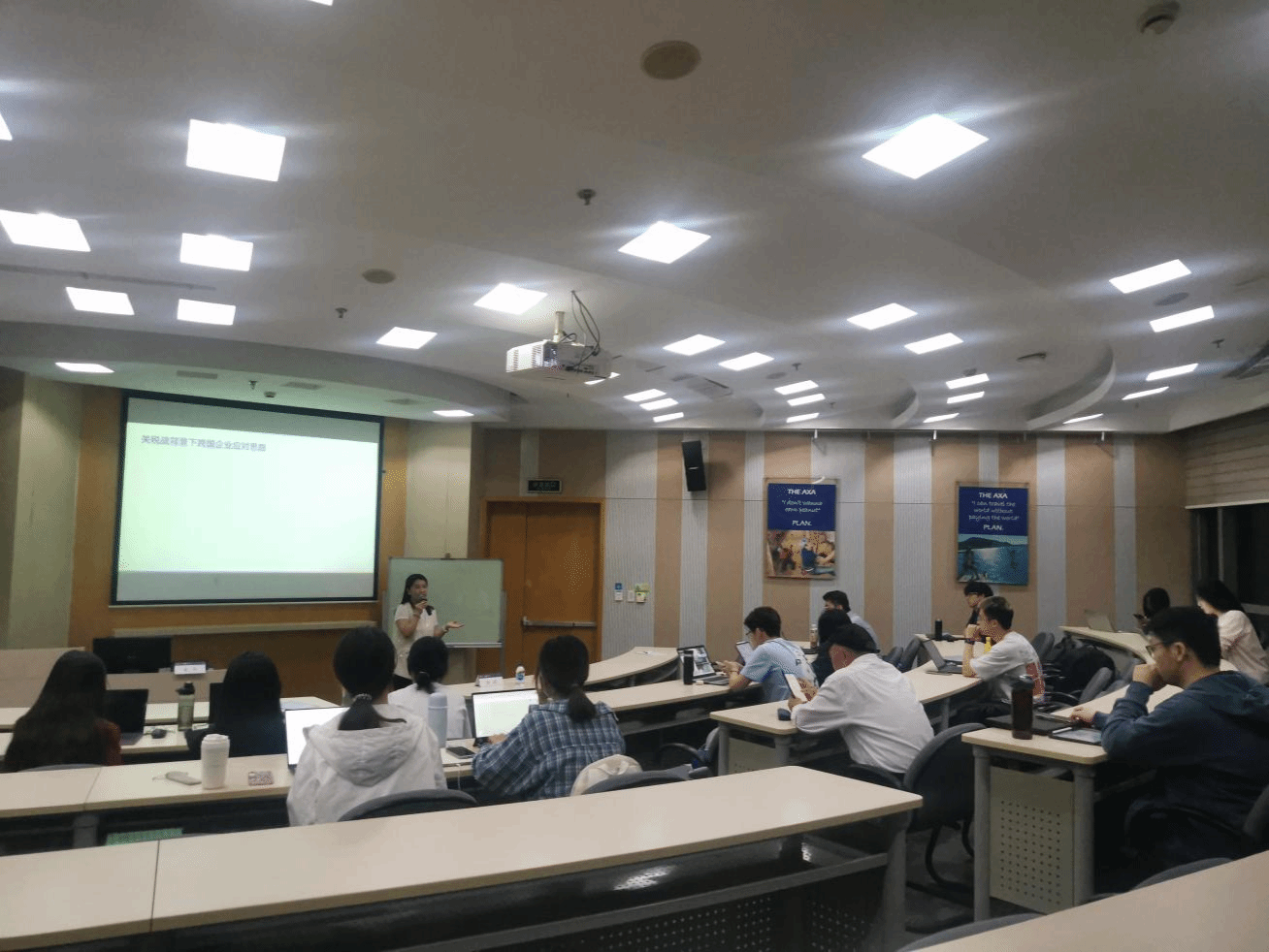 5月14日晚,晖致医药有限公司税务总监朱萍女士应邀来到2026年足球世界杯直播经济学院,为经济学院税务专业硕士的同学们带来了“中美关税战背景下企业全球供应链布局和税收应对”主题讲座。本次讲座由2026年足球世界杯直播税务硕士项目学术负责人杜莉教授主持。