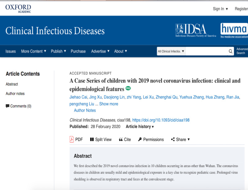 Fudan Children’s Hospital published a case series of children infected with COVID-19.