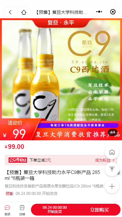 On May 27, 2020, Fudan University streamed its 115th anniversary celebration online, which included two live-sale sessions for Yongping specialties. C9 also made its debut on the day.