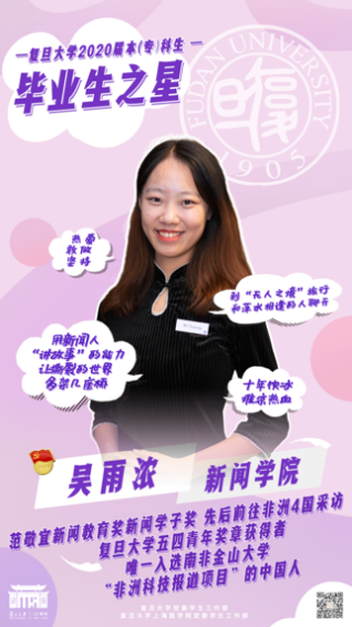 Here we introduce Wu Yunong, 2020 Graduation Star of Fudan University and Rhodes Scholarship Finalist for China from the School of Journalism.