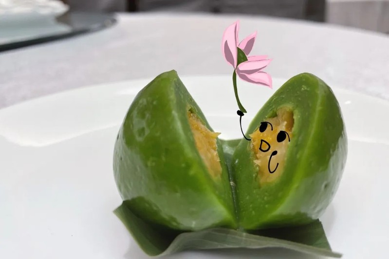 Qingtuan with lotus seed paste and salted egg yolk filling