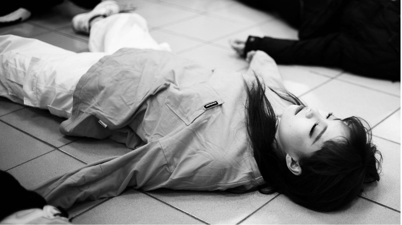 “Body and Expression” workshop, where students spread out their limbs to resemble spilling water
