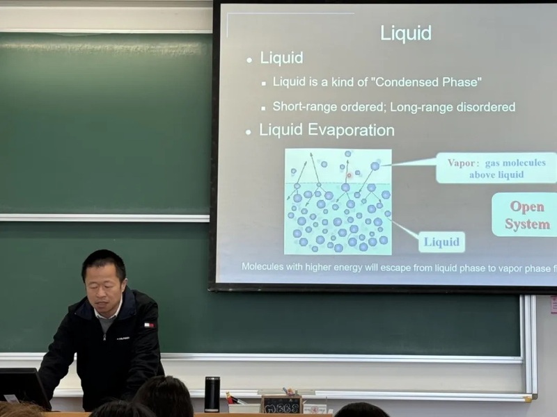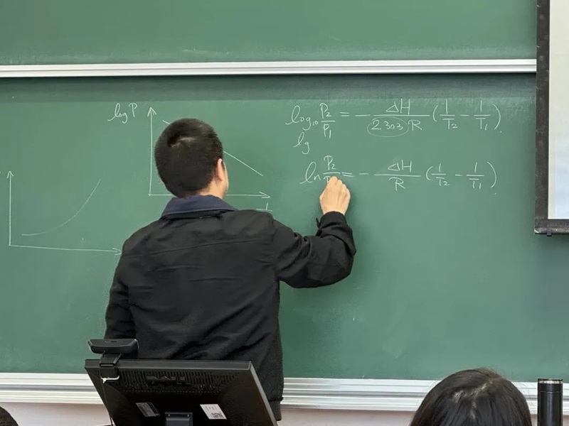 During Zheng’s lecture on the ideal gas state equation, he guided students to consider the phase transition of gases to liquids by analyzing specific examples. He prompted them to contemplate how parameters such as pressure, temperature, and volume change under specific conditions, emphasizing the significance of understanding these transformations in practical contexts.
