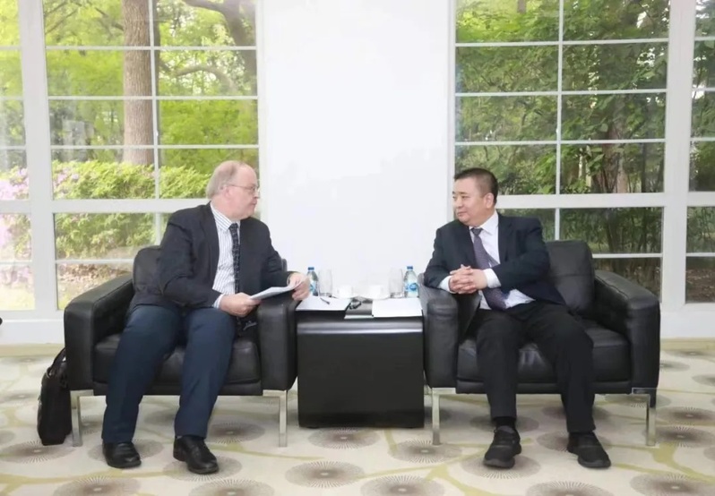On April 26, President of Fudan University JIN Li met with Chief Executive of the Association of Pacific Rim Universities (APRU) Thomas Schneider, sharing insights on further cooperation.