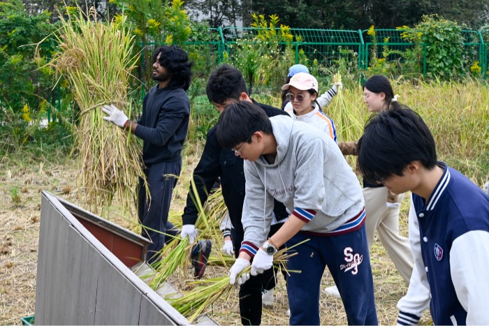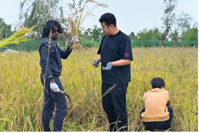 Farming demands a high level of coordination and teamwork. During the visit, students tried plowing fields, planting Chinese cabbage and harvesting rice. “It’s my first time doing the rice harvesting, but sharing the experience with my classmates has been a lot of fun,” said Vicash.