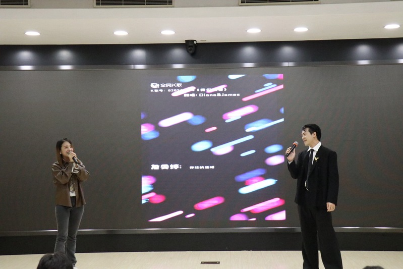 GUO Zhiyue, a teacher at ICES, captivated the audience with the heartfelt duet of a Chinese song Our Love with James W. Goh., one of her students from Australia.