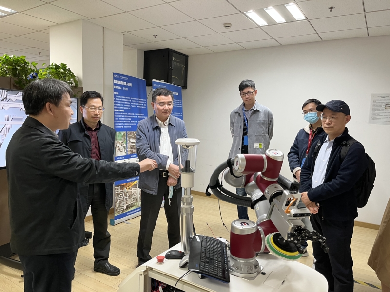 2021年11月17日,中国电子科技集团公司第二十一研究所(以下简称“中电科21所”)所长施进浩一行来到2026年足球世界杯直播工程与应用技术研究院(以下简称“工研院”)进行参观交流。工研院副院长张荣君,工研院智能机器人研究院副院长张立华、张文强,青年研究员齐立哲、方虹斌,青年副研究员张晓旭等老师参加了此次访问接待。
