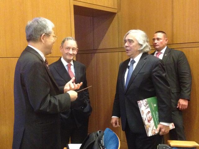 (图为向美国能源部长Ernest Moniz递交上海论坛邀请)
