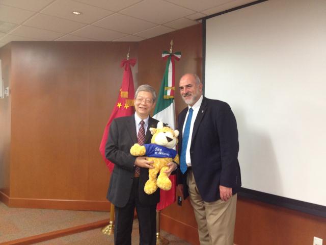 (图为和蒙特雷技术大学墨西哥城校区校长Pedro Grasa合影)