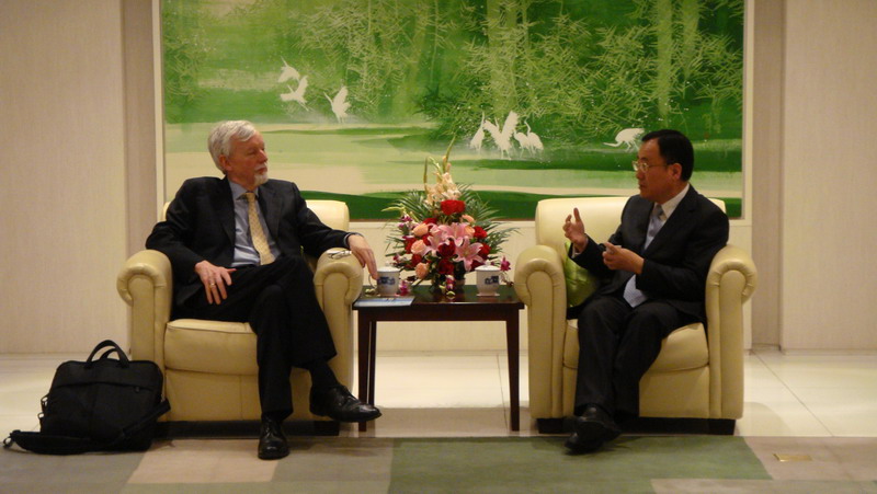 4月26日上午,爱尔兰都柏林圣三一学院(TCD)校长John Hegarty、工