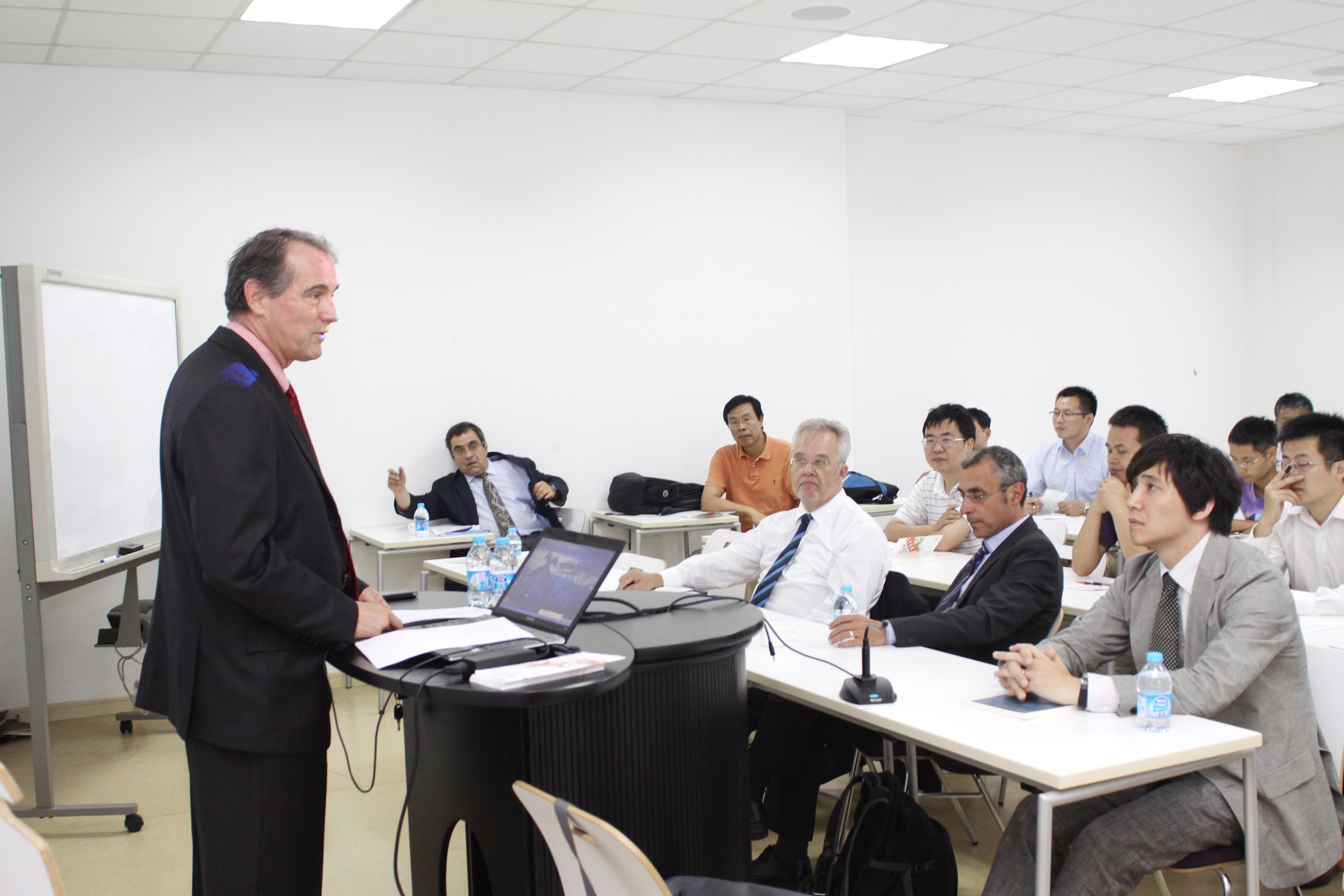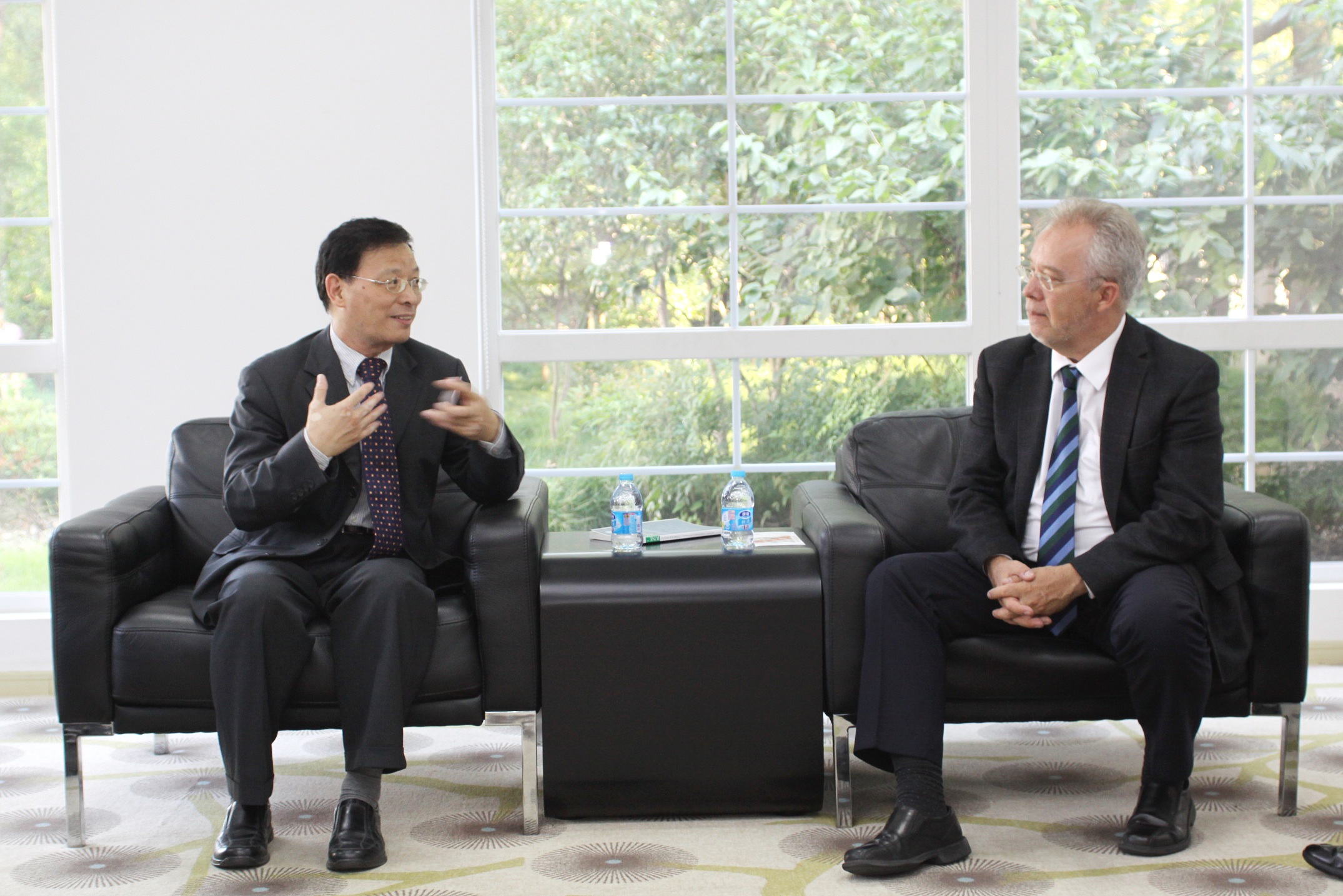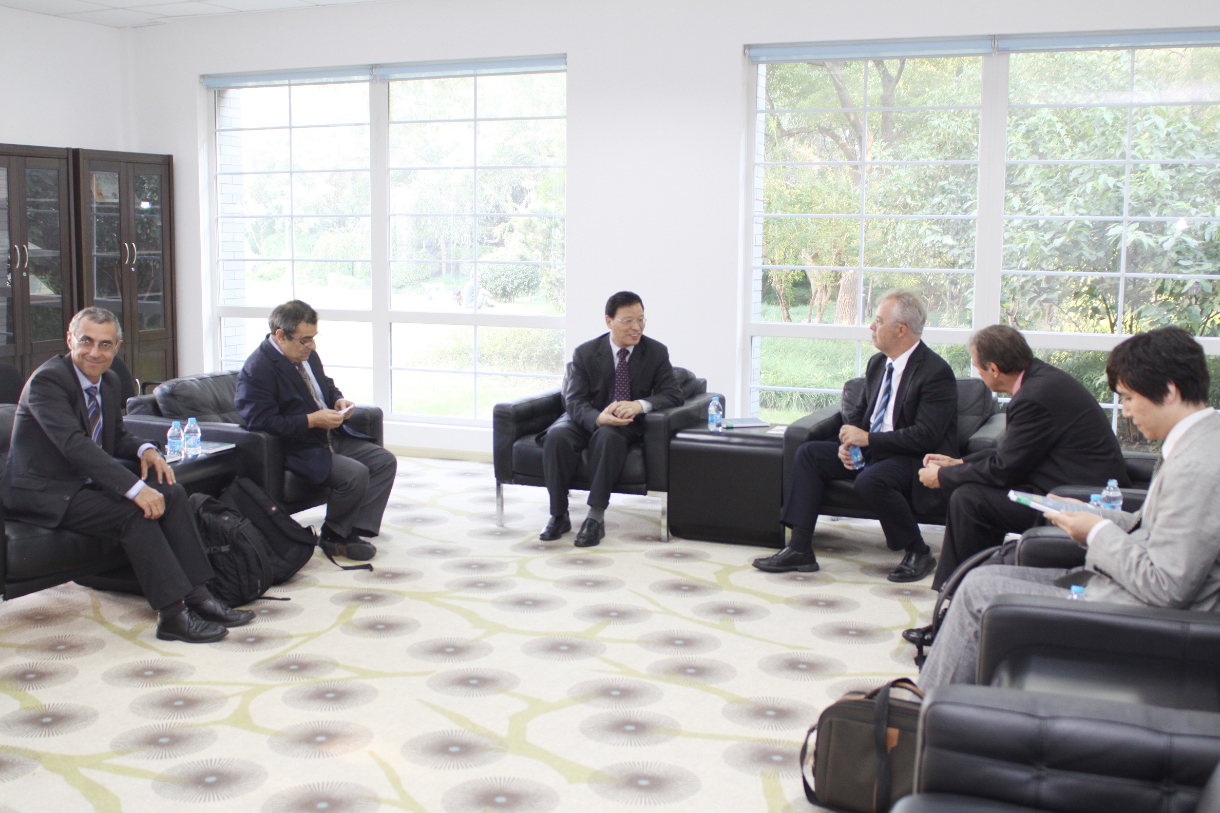 随同前来的还有Prof. Alain Peyraub欧洲研究委员会科技处官员,Mr. Thierry Prost欧洲研究委员会基金筹备处主任和Mr. Ming Cao欧洲研究委员会启动基金经理。我校校长外事顾问陈寅章教授,外事处副处长唐文卿,外事处欧洲事务项目主任汪颖和科技处徐晓创老师参加了宣讲前的会谈。