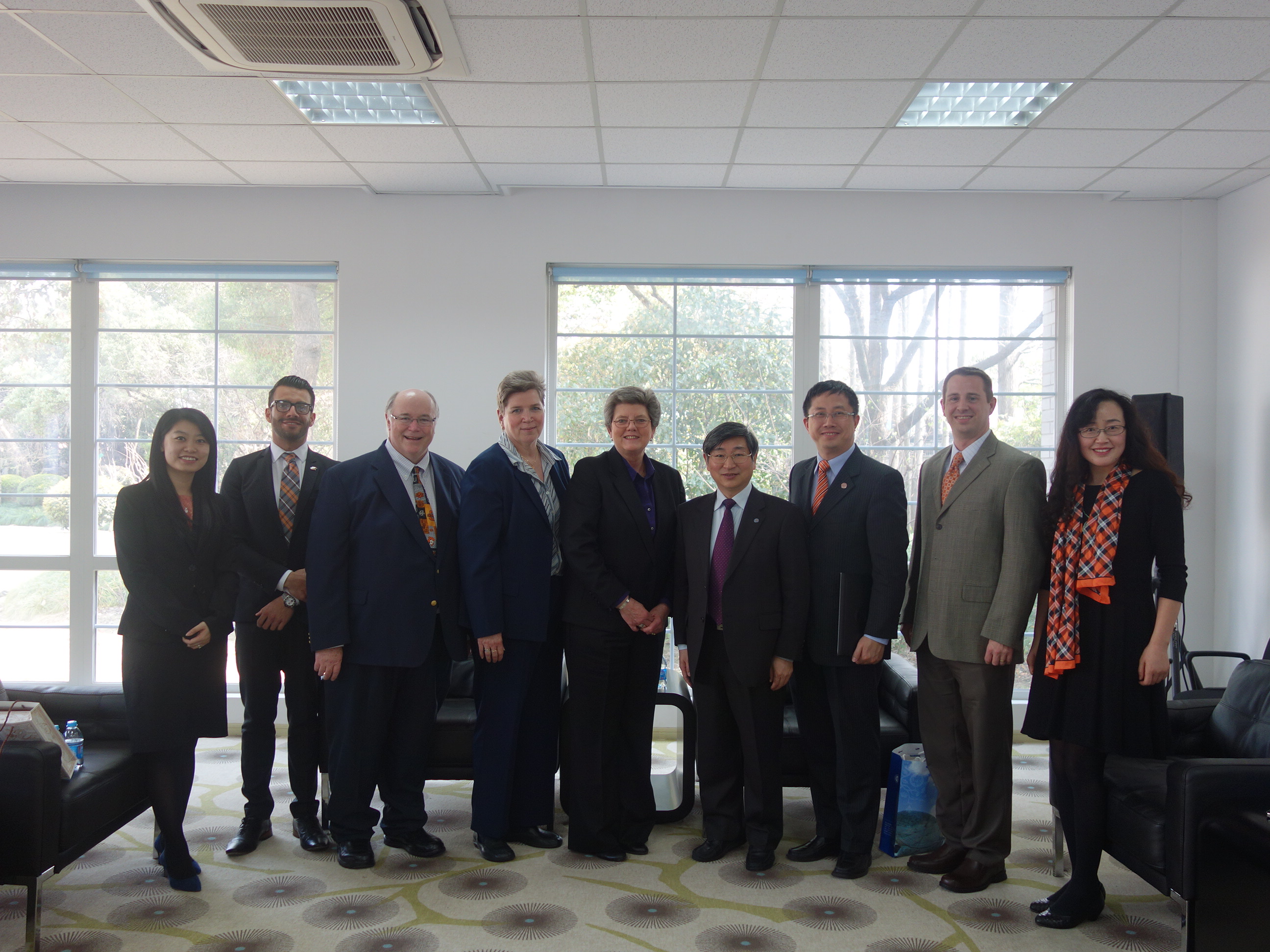 2014年3月24日下午,陈立民书记、外事处处长朱畴文、外联处副处长刘莉在外事处接待了美国俄克拉荷马州立大学副校长Dr. Lee Bird一行,随行的还有分管国际教育的助理副校长Dr. David Henneberry, 住宿部主任Dr. Matt Brown等。
