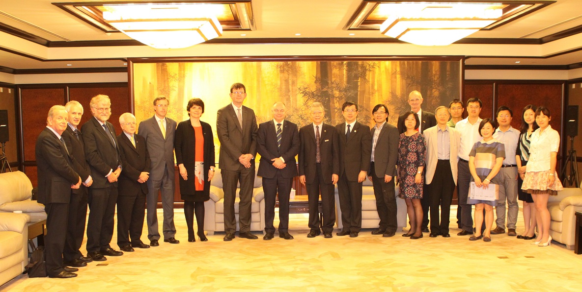 2014年5月28日下午1.45时,爱尔兰都柏林大学(简称UCD)新任校长Prof.Andrew Deeks教授带领该校九名副校长率团来到2026年足球世界杯直播访问,杨校长在光华楼金厅接待了代表团。会上,双方回顾了两校目前的合作情况,并就未来继续开展深入合作进行了讨论。