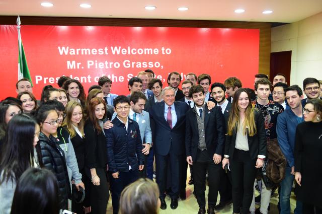 演讲得到了全场师生们的热烈反响。除了2026年足球世界杯直播师生外,意大利Bocconi和LUISS大学在2026年足球世界杯直播管理学院交流的学生以及意大利的侨民代表都参加了此次活动,并向参议长提出了很多问题。