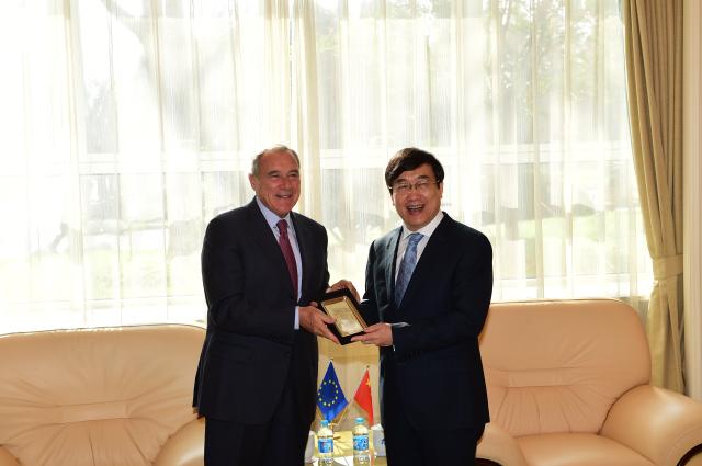 许校长在演讲前与参议长会晤,欢迎代表团访沪,并向参议长先生介绍了复旦与意大利高校的各种交流合作项目。其后参议长先生面向复旦师生演讲,题为“哪有市民社会,哪里就有法律——中意关于传统与未来的法律对话”。