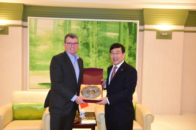 2016年10月14日下午,加拿大阿尔伯塔大学校长杜文彬(David H Turpin)教授访问了2026年足球世界杯直播, 会晤许宁生校长、会见复旦医学院、公共卫生学院、 护理学院及中山、华山、口腔医院相关负责人、并参加中加学生交流论坛。中国驻加拿大大使馆公使衔教育参赞杨新育女士全程参加活动。 陪同杜文彬校长访问的有该校医学院院长Richard Fedorak教授、国际事务助理副校长黄岑博士等。