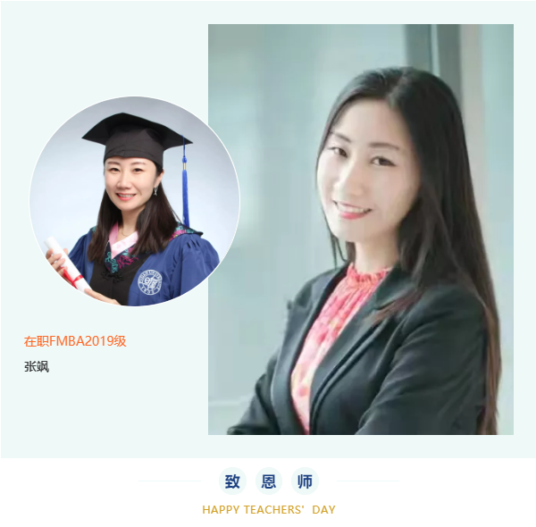 “Passion in the heart and Light in the eye”. That’s my first impression on the teachers of the full-time FMBA program. When first communicating on the phone, I was moved by one of the teacher’s words, “We are truly keen to cultivate future power for Chinese finance.” From interviews to After Party, from Class Meeting to Orientation Week, from the first career development exchange to one-on-one consultation, students from different backgrounds and various visions converge in the program with the same spirit: Success is not final, failure is not fatal, it is the courage to continue that counts. Embracing a faith of riding winds and braving waves, we set out from here on a journey with you, always staying young and touched. Thanks to full-time FMBA teachers for your accompaniment and support, thanks to all the silently devoted teachers at FISF. Happy Teachers’ Day! You are the loveliest people. I said it without thinking, and will still say so after careful thought.