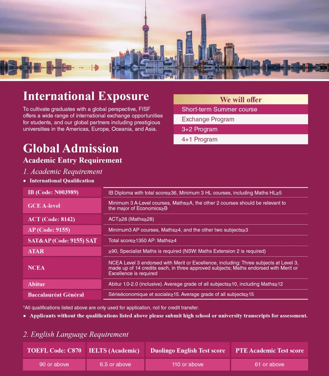 For detailed application and admission requirements please contact us by email or via the inquiry form.