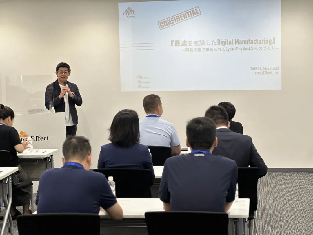Mr. Masayoshi Takeda, President of crossEffect, introduced the development history of the company and its experience in mission management and technological innovation.