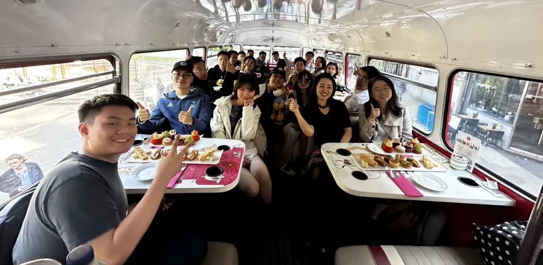 Basking in the languid sunlight in the afternoon, the students went sightseeing in the double-deck red bus shuttling through downtown London, which was converted into a mobile tearoom where they could enjoy the delicate deserts and fragrant tea drinks. Everyone enjoyed a leisurely time.