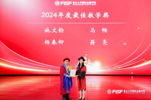 ▲Huasheng Gao, Deputy Dean of FISF, Deputy Secretary of General Party Branch, Deputy Dean and Professor in Finance, granting the “2024 Excellent Research Award” to Professor Yi Huang
