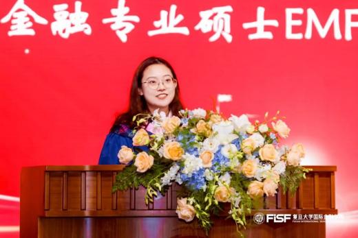▲FMBA FT+ Graduate Representative Xinyu Deng giving a speech