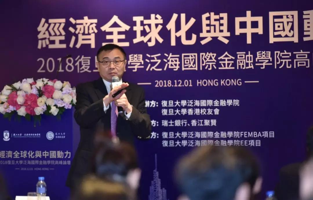 On December 1, 2018, Fudan Fanhai International School of Finance Summit themed “Economic Globalization and China Drive” was held in Hong Kong, China. The forum was co-hosted by FISF and Fudan University Alumni Association of Hong Kong, co-organized by the Union Bank of Switzerland (UBS) and Hong Kong Sage United, and jointly undertaken by Finance EMBA project team and EE project team.