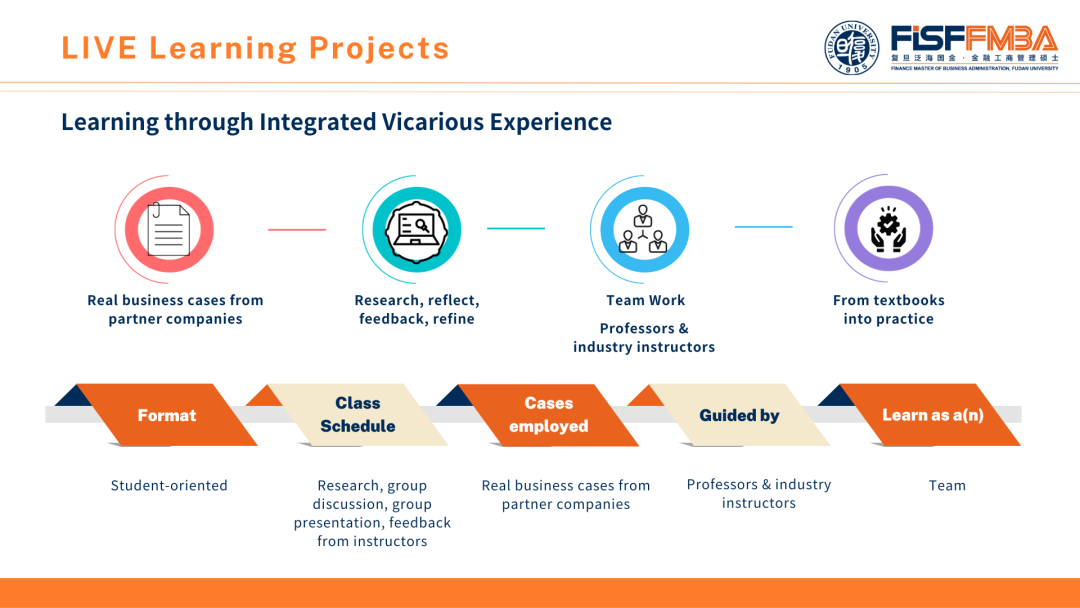 Towards the end of each learning module, students will be tasked to apply their classroom learning by undertaking a project designed by one of our industry partners. LIVE learning aims to help students transfer the knowledge they have learned from the previous lectures into their own practical understanding and critical thinking, problem-solving skills, workplace abilities, and behaviors. It is a leap from traditional classroom learning. All the projects are real cases provided by our industry partners instead of from textbooks. Instructors for LIVE projects are composed of lecture professors and industry experts. Students are required to work in teams and are assessed by presentations.