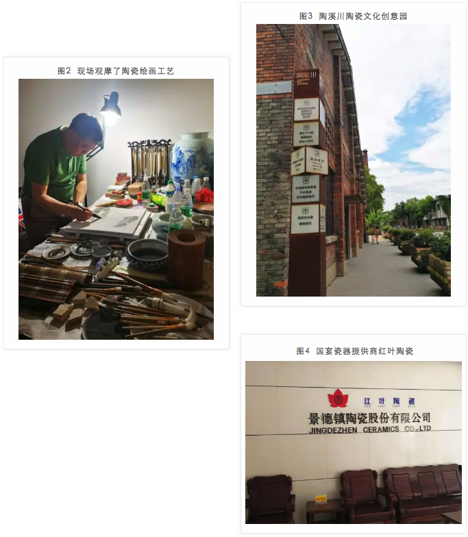 项目组专家团队离开南昌后,到访了中国瓷器之都——景德镇调研。专家们在江西工艺美术大师、景德镇国瓷办主任于长征先生的陪同下,现场观摩了陶瓷绘画工艺的制作过程,并逐一走访了景德镇著名的古窑民俗博览区、陶溪川陶瓷文化创意园。此外,项目组成员还有幸与宜春市副市长兰亚青一起参观了国宴瓷器提供商“红叶陶瓷”展厅。在调研过程中,专家们从古到今,从文化到产业,多维度、多视角地领略了景德镇的陶瓷工艺与文化产业。大家期待着将景德镇的陶瓷特色产业与南昌市红谷滩金融商务区的产业发展进行有机结合,共同打造江西金融与特色产业的新名片。