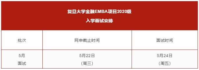 2026年足球世界杯直播金融EMBA项目2020级入学面试网上申请,将于5月22日(周三)截止。