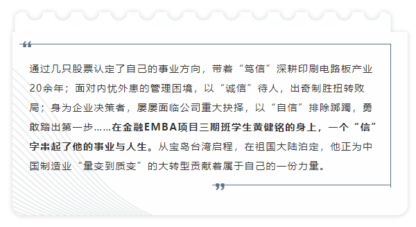 FEMBA三期班黄健铭:20年专研电子制造,见证“中国智造”之路