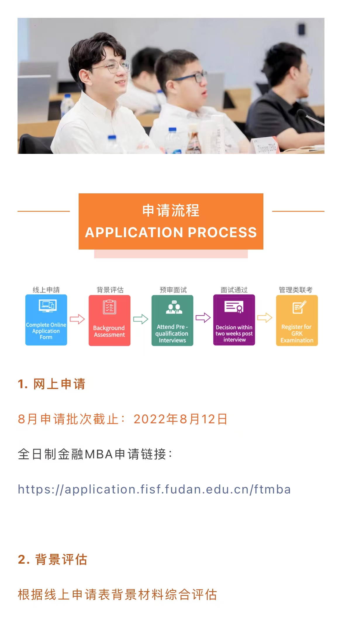每批申请的面试资格审核条件不变,受招生人数限制,建议对全日制金融MBA感兴趣的考生可以尽快递交申请。