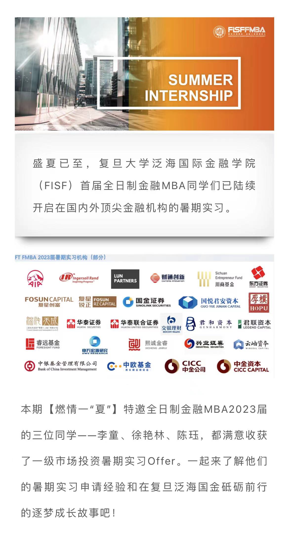 【燃情一“夏”】全日制金融MBA 2023届暑期实习捷报(四)