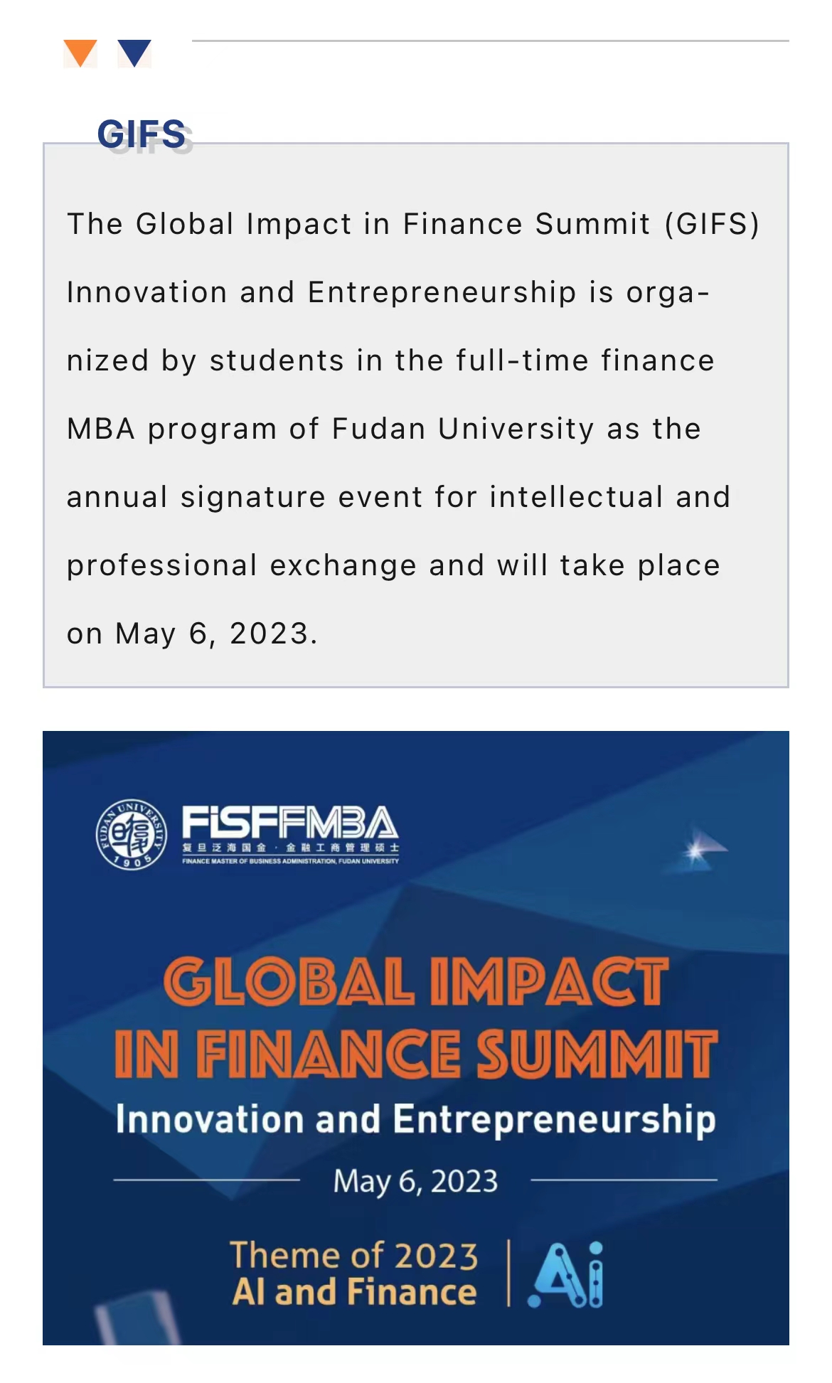 GIFS is an action-driven symposium that unites academic and industry leaders with MBA students worldwide to facilitate thought leadership in sustainability and economic responsibility. It has attracted distinguished students from all programs of Fudan University as well as students from top universities around the world. The summit inspires dialogue and collaborative efforts on challenging global issues with a new theme each year.