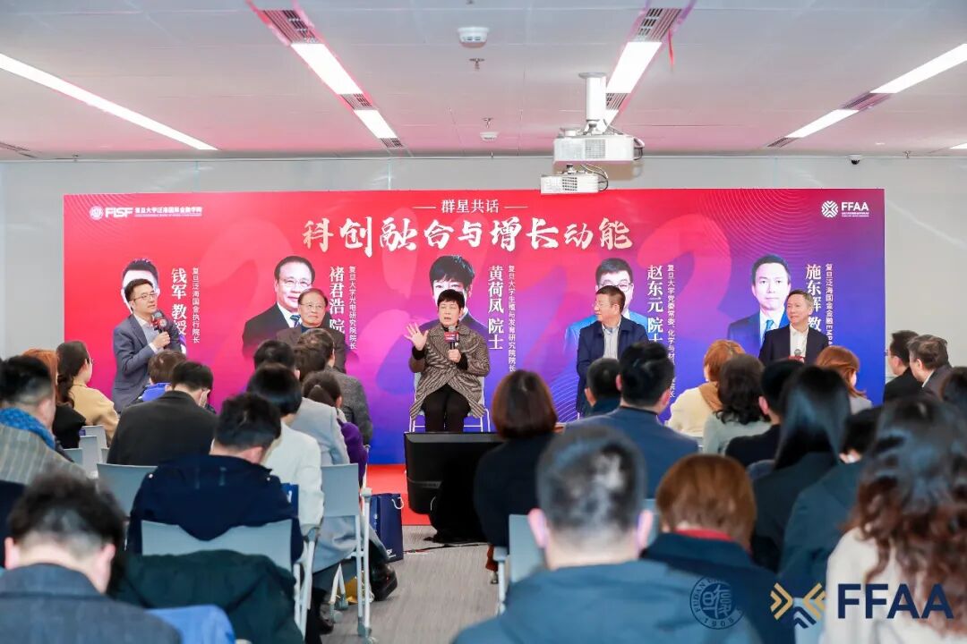 群星璀璨,熠熠生辉。三场精彩的主旨演讲领航师生校友共觅经济动能与科创融合新地,而由钱军教授主持,褚君浩院士、黄荷凤院士、赵东元院士与复旦泛海国金学院金融学施东辉教授任对话嘉宾的群星共话环节,则进一步以科创融合与增长动能为主题展开了探讨分享。群星齐聚,共话经济新知。