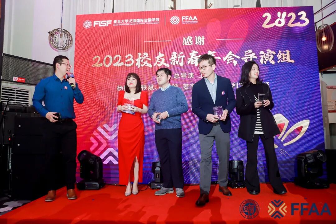 2022年11月到2023年2月,横跨一年、长达3个月的筹备,最终造就了复旦泛海国金2023年度之约的璀璨。为感谢校友导演组的反复推敲、逐步推进和精心打磨,校友会理事、金融MBA PT2019级校友徐迪上台致辞并宣读导演组名单。他们分别是:年会总导演、金融EMBA2019级校友王征,金融EMBA2019级校友李崯,金融EMBA2020级校友王慧英,金融MBA PT2019级校友徐迪,金融MBA PT2021级校友杨柳,金融MBA PT2021级校友刘轶斌,金融MBA PT2019级校友黄䶮晗,金融MBA PT2020级校友姜宇,金融MBA PT2021级校友范利宁,EMF2019级校友詹文茜,EMF2021级校友朱俊钰。雷鸣般的掌声经久不停,是对校友导演们的感谢,也是对明年再聚的期待,复旦泛海国金2023校友新春年会就此落下帷幕。