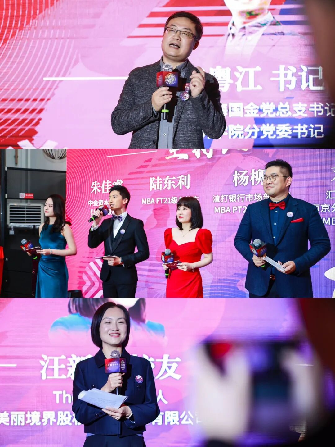 从金融洞察,到百业千态,结束两场精彩的平行圆桌后,学院师生校友们共同来到了The Press 申报馆,以新春晚会同贺新岁、共迎未来。晚会由渣打银行市场部经理、金融MBA PT2021级在校生杨柳,中金资本分析师、EMF2020级校友朱佳睿,汇添富基金南京分公司总经理、金融EMBA2020级校友刘曦,和金融MBA FT2021级在校生陆东利共同主持。复旦泛海国金党总支书记、经济学院分党委书记李粤江,The Press创始人、上海美丽境界股权投资管理有限公司董事长汪新芽校友致开幕与欢迎辞。