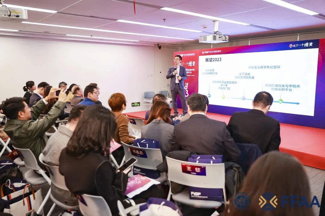 “2022年,是复旦泛海国金不凡的一年”,展望2023,钱军教授也许下了对学院未来发展的四点期愿:“一是本科项目顺利完成首届学生的招生工作;二是成都市复旦西部国际金融研究院业务有序开展;三是恢复、加强学院国际化交流。”论及第四点,钱军教授特别指出了持续打造校友与学院共同成长平台的重要价值,“实现母校与校友的终身学习与终身交流,将成为我们永远不懈的追求与规划”。